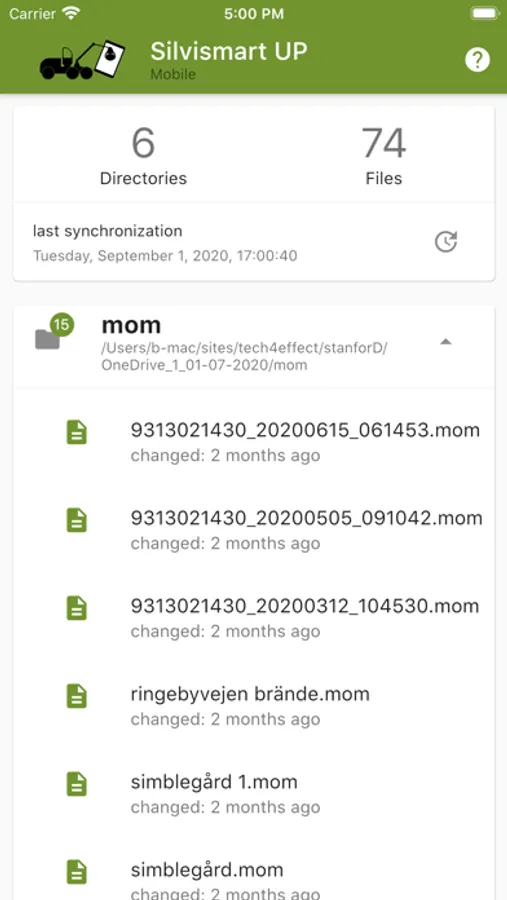 Transfer files in the StanforD format from the harvester's on-board computer to your smartphone. Use this APP together with Silvismart UP Desktop for Windows7 to send StanforD Data to your smartphone.
