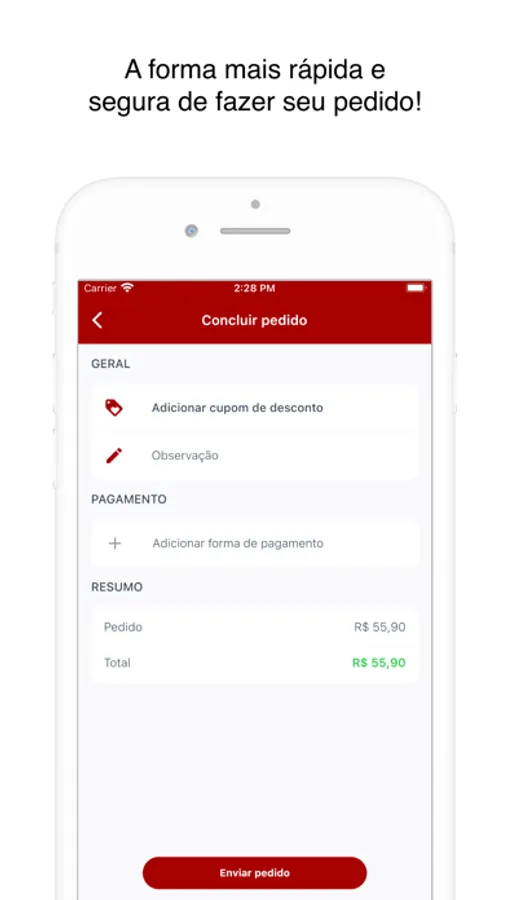 No app, você encontra de forma rápida o cardápio completo e ainda pode utilizar a ferramenta de busca para localizar diretamente os produtos que você deseja.