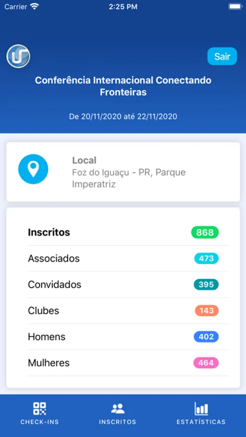 O aplicativo UnyClub Eventos é uma ferramenta indicada para o gerenciamento de eventos promovidos por Distritos de Rotary International cadastrados no Unyclub. Esta ferramenta permite o monitoramento de inscritos classificados por sala ou produtos adquiridos durante a inscrição. As confirmações de check in, retirada ou uso de produtos e participação em salas de treinamentos ou palestras são via QR Code em cartão ou pelo App Unyclub do associado. Além disso o gestor do evento tem à disposição relatórios diversos, aniversariantes e uma ferramenta que sorteia aleatoriamente participantes já confirmados no evento.