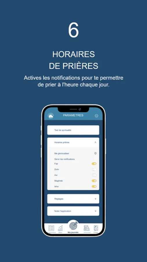 Vous pourrez également programmer des notifications quotidiennes à l’heure que vous souhaitez afin de vous rappeler vos objectifs définis de la journée.