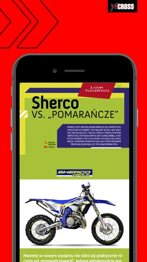 Dwumiesięcznik X-cross ukazuje się od grudnia 2010 roku. Pismo jest adresowane do zawodników z licencjami, trenerów, mechaników, ale także i tych, dla których off-road to sposób na spędzanie wolnego czasu. X-cross to bogato ilustrowany magazyn, w którym Czytelnicy znajdą prawie wszystko o motocrossie, enduro, cross-country, supercrossie, superenduro; autorskie relacje z zawodów krajowych i zagranicznych, porady eksploatacyjne, szkoły jazdy, testy motocykli i akcesoriów, wywiady z zawodnikami, prezentacje klubów, fotoreportaże z imprez. Chcemy dotrzeć do wszystkich, którzy interesują się sportami motocyklowymi „spoza drogi”, dla których dwa koła to ich życiowa pasja.