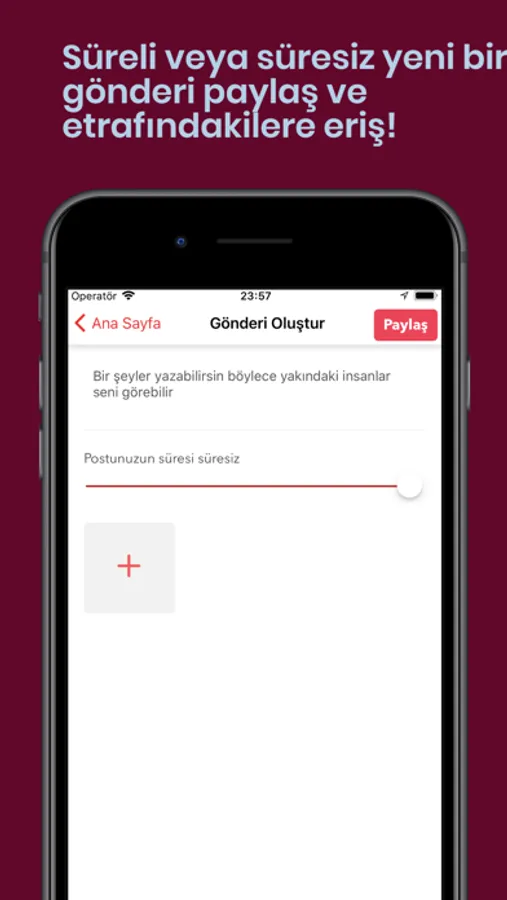 Uygulama içerisinde oluşturduğunuz gönderiler etrafınızda bulunan kişilerle paylaşılır.