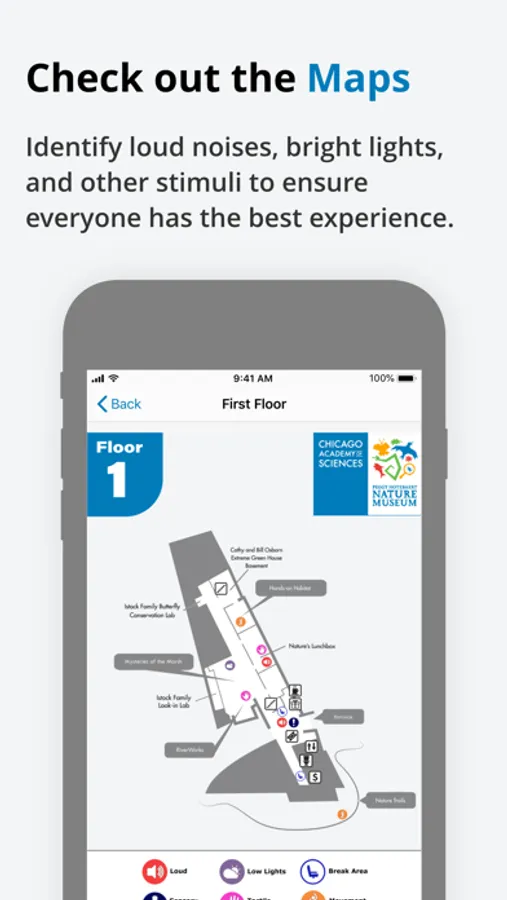 Download our free Sensory Friendly Nature Museum app to help plan your next visit! In our app, you can read short social narratives to learn more about our exhibits, create your own schedule to follow, communicate with tap-to-talk icons, play Nature Museum matching games, learn insider tips, and more. Our app was specially designed to help those with autism and other sensory needs feel supported and excited to visit our museum, but it is also a great tool to help any family prepare for a wonder-filled visit!