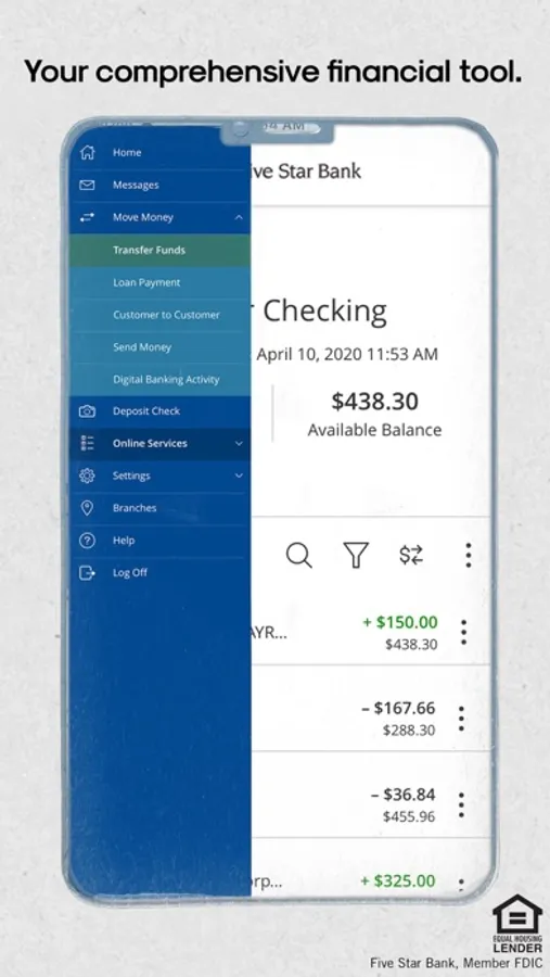 • Manage your accounts on-the-go. Check balances 24/7, view pending transactions and your transaction history from the Five Star Bank Digital Banking dashboard.