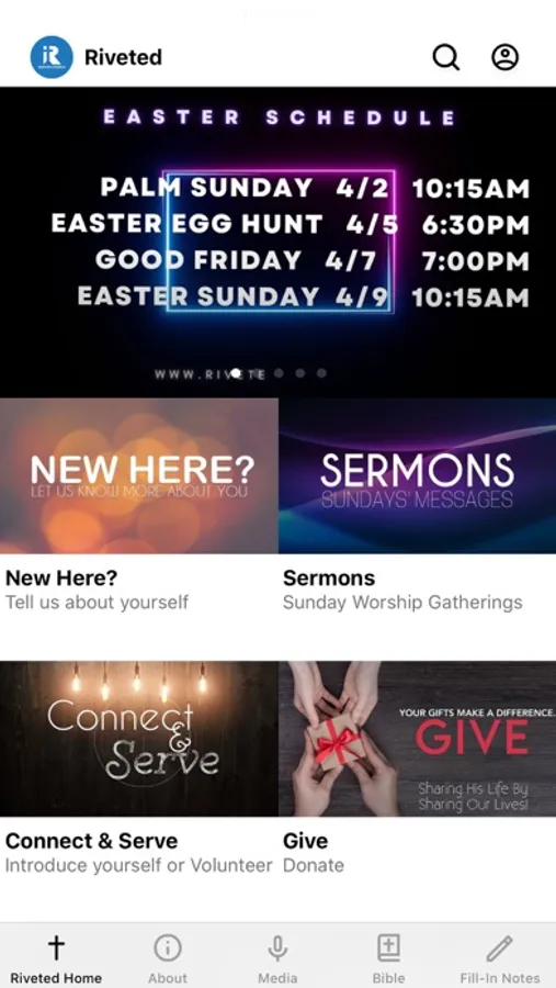 Riveted Church App will help you stay connected with the day-to-day life of our church. At Riveted we are "Sharing His life by sharing our lives!" This is a great place to stay share life and stay connected.