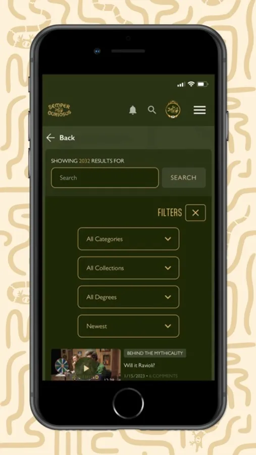 Enjoy the perks of the new Mythical Society App! Members can watch and cast their favorite content, search our vast video library including filtering by Degree access, and customize their experience by adding favorites. Creating, editing, and deleting comments is streamlined, notifications are much improved & relevant, and members can compete with app visitation stats!