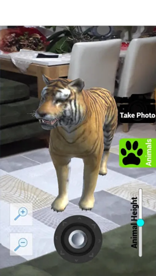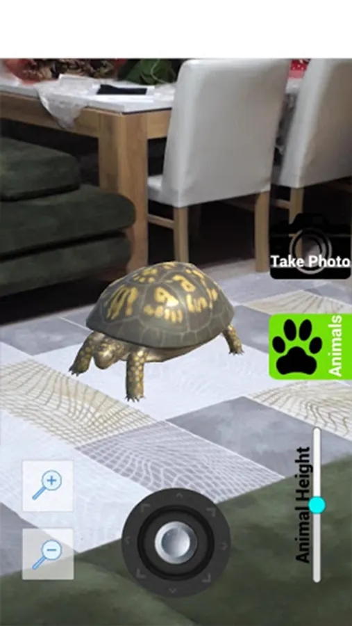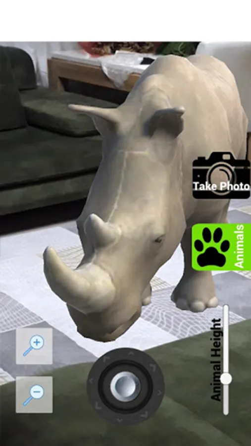 When you open app you firstly select the animal and than you must select the place where you want to put animal in your real life on the camera. And than you can turn animal with your finger easily and change scale with your two fingers like zoom. You can set animals height from the floor with slider at the right side of screen.