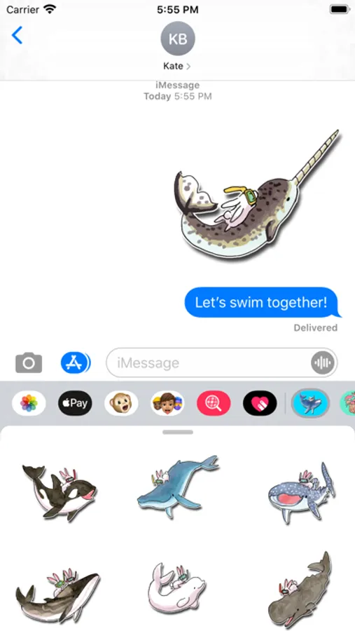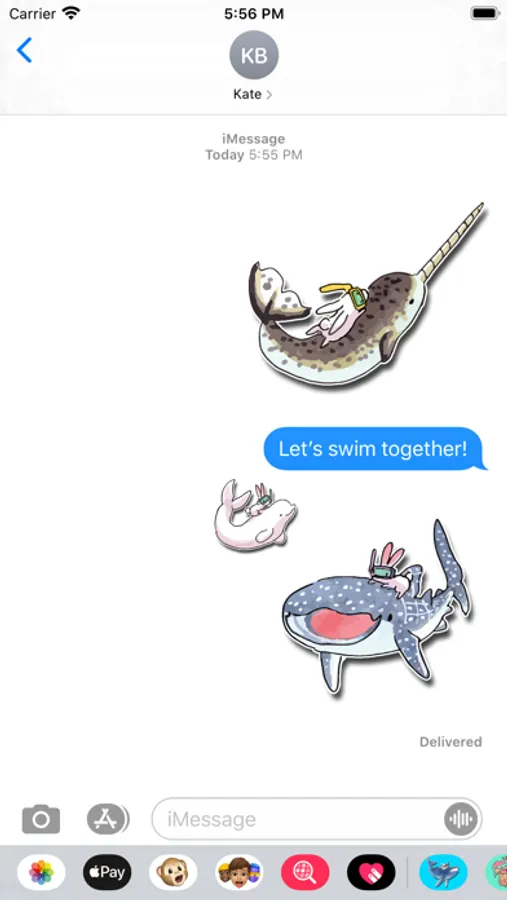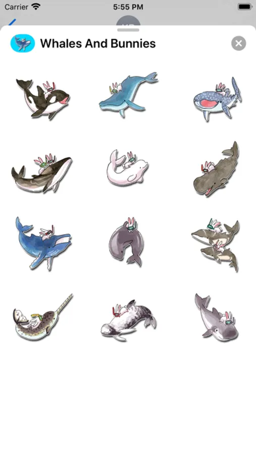 Whales and bunnies have become best friends in this new sticker app! The app comes with 12 stickers to make your messages fun!