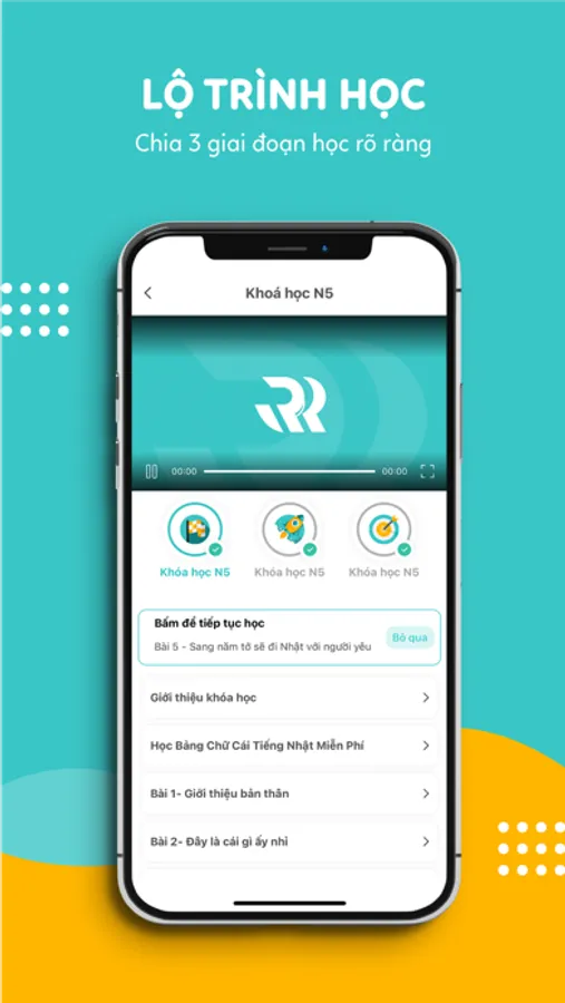 Ứng dụng có đầy đủ toàn bộ các khoá học từ N5 cho tới N1, Business, giao tiếp. Phân chia lộ trình học rõ ràng.