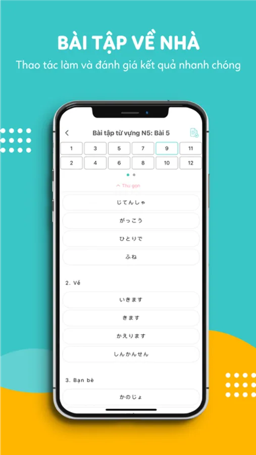 2.Làm bài tập dễ dàng trên app, tính điểm và đánh giá kết quả.