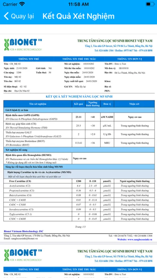 - Đăng ký thực hiện xét nghiệm tại Bionet.