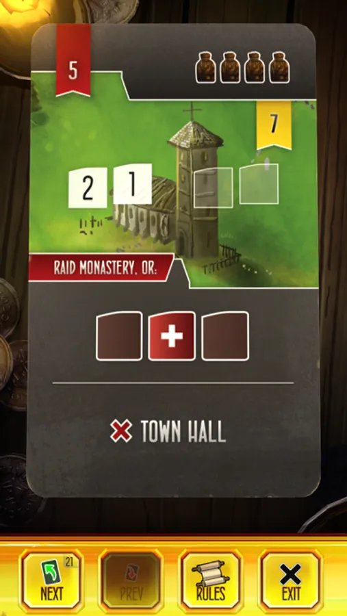 You will always take your turn first, followed by your opponent. Your turns function just as they would in the standard game (with the exception of 1 Village location being blocked each turn). Your opponent’s turns operate differently. On their turn, reveal the top Scheme Card from the Schemes Draw Pile and follow its instructions. Your opponent will always attempt to Raid if they can. Otherwise, they will Work.