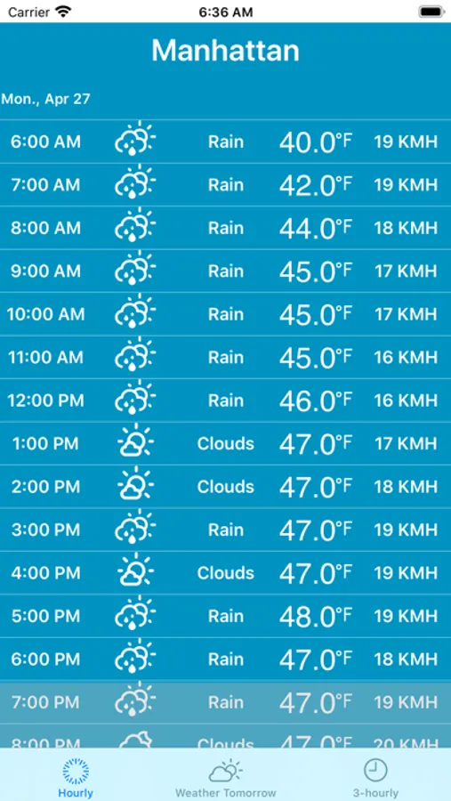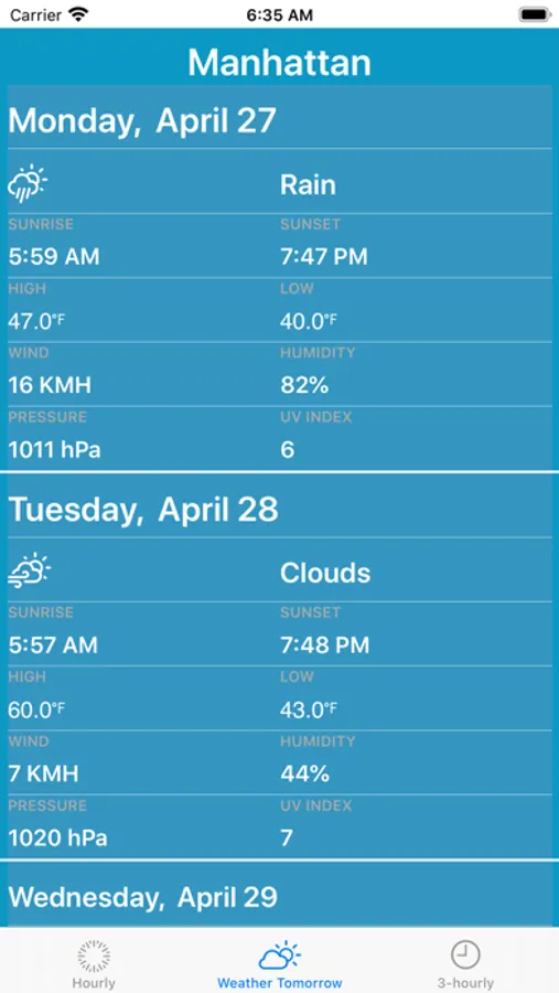 • Live weather conditions, clear or cloudy, temperature, wind speed information for your current place.