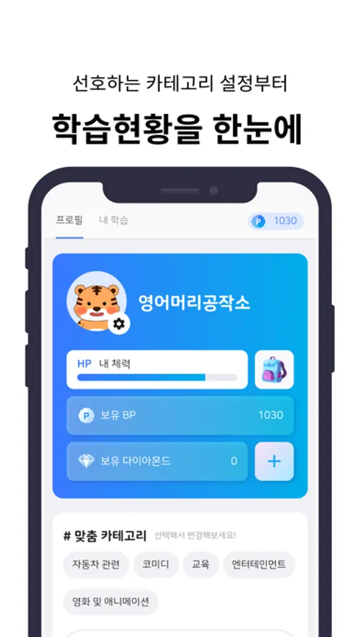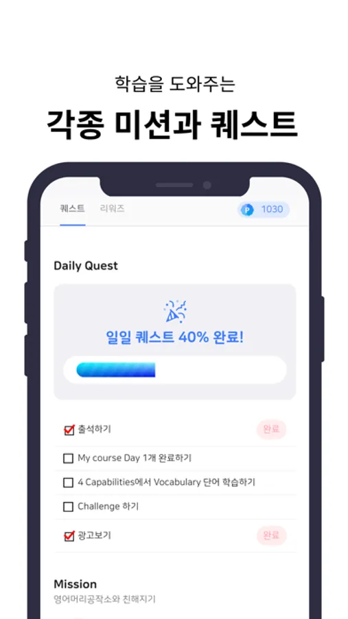-학습을 도와주는 다양한 퀘스트 및 미션 등이 있습니다.