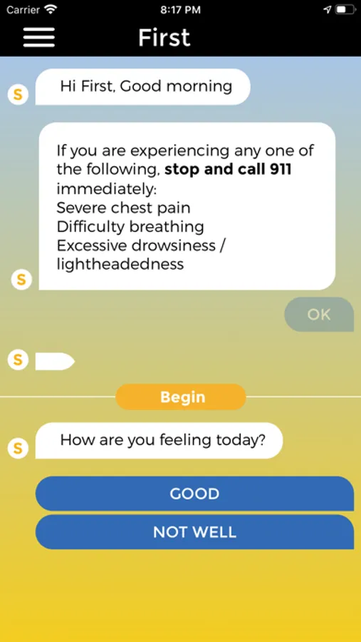 The App uses Apple Healthkit to capture basic information like temperature if the user provides permission to forward to the health care providers if necessary.