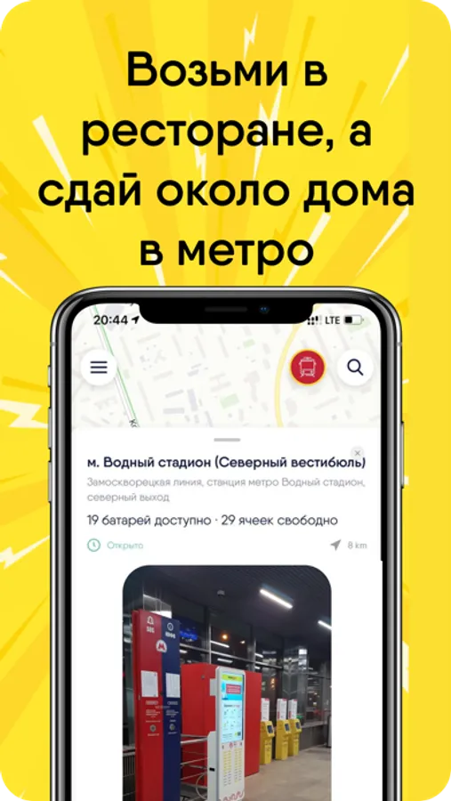 2)Найдите ближайший терминал EnerGO, отсканируйте QR-код, возьмите аккумулятор.