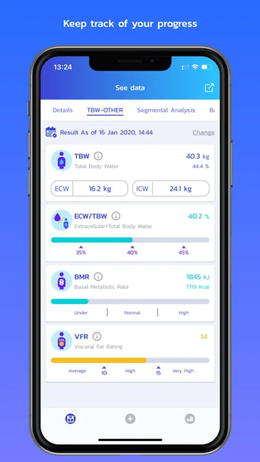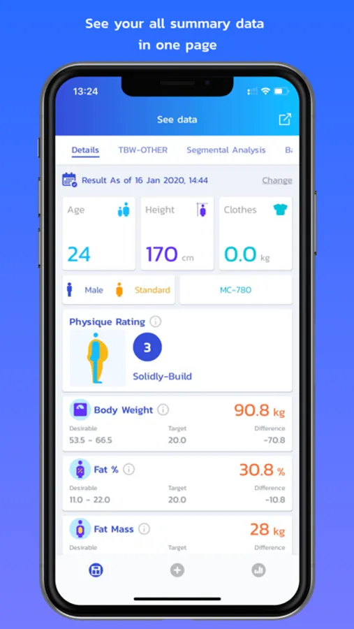 - อ่านค่าผลการวัด พร้อมกราฟประเมินผล รวมถึงประวัติย้อนหลัง พร้อมแสดงเกณฑ์มาตรฐาน