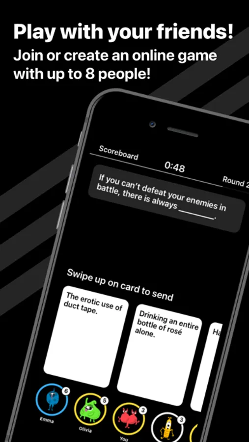 Too Hot To Handle is a free to play card game that is inspired by Cards Against Humanity. Too Hot To Handle offers a frictionless gameplay experience unmatched by any other card game. Play with up to 8 people for maximum chaos.