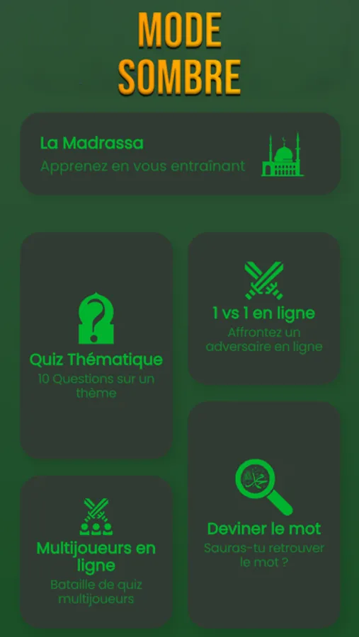 Le mode madrassa vous permet de vous entraîner sur les différentes thématiques.