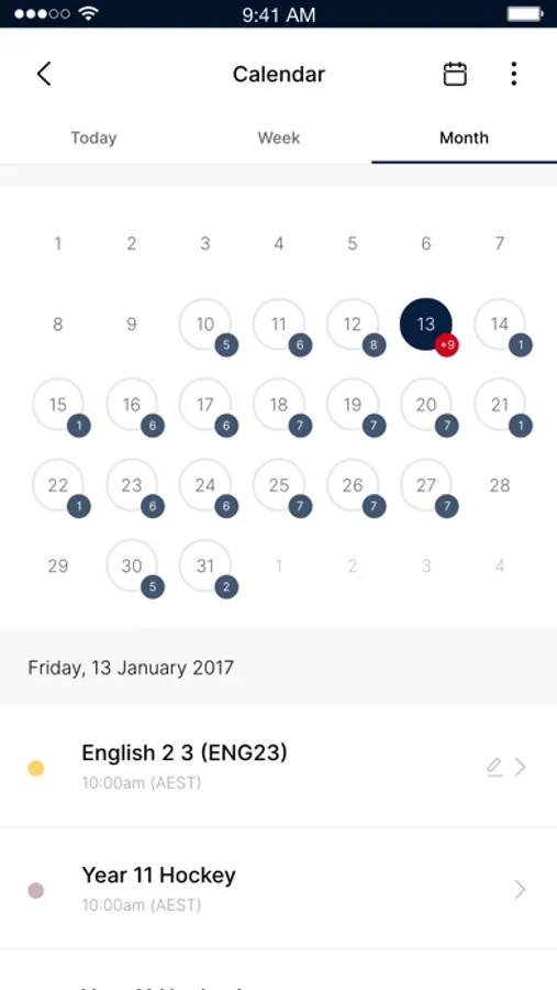 Calendar: the Calendar provides parents, teachers and students a personalised view of what's coming up for the day or in the future. Students can also receive reminders when the due date for their work is approaching