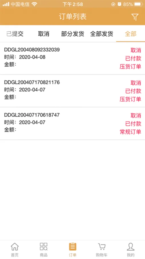订单管理,销售订单,积分兑换订单,提货订单等功能。