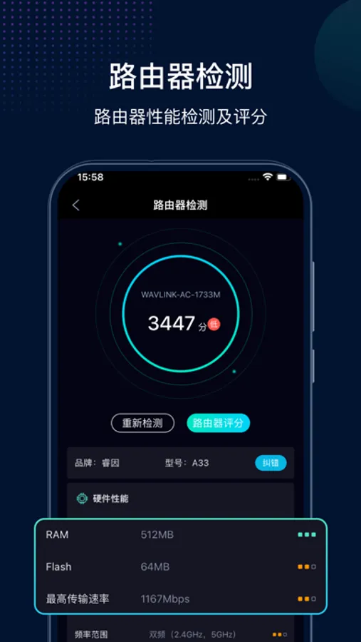 【路由器检测】全方位了解路由器使用状态;路由器评分,为自己的路由器打分,查看路由器评分榜,了解其他路由器的性能。