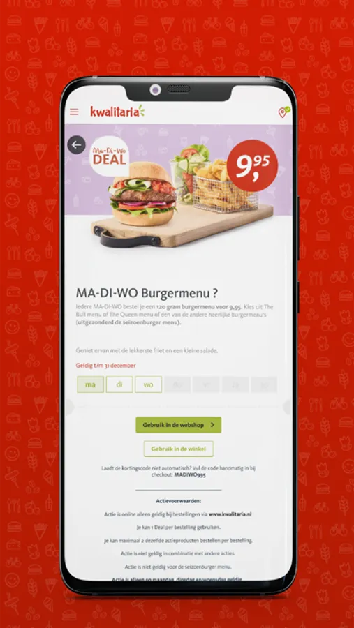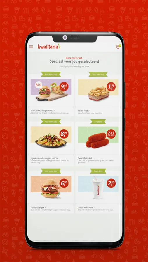 Lekker makkelijk en snel bestellen bij Kwalitaria? En toegang tot de lekkerste deals voor jouw favoriete locatie? Download de Kwalitaria App en zie in één oogopslag welke aanbiedingen de chef speciaal voor jou geselecteerd heeft. Bestel daarna makkelijk in de website.