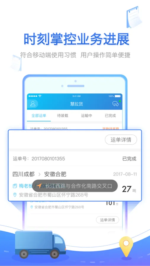 慧拉货是一款针对物流运输的综合服务平台软件,解决物流公司和司机在调度、运输、结算过程中的信息化需求。物流公司通过平台时刻掌控业务进展,对承运运单情况一目了然;通过平台自动获取实时货物状态,对车辆进行实时在途追踪。