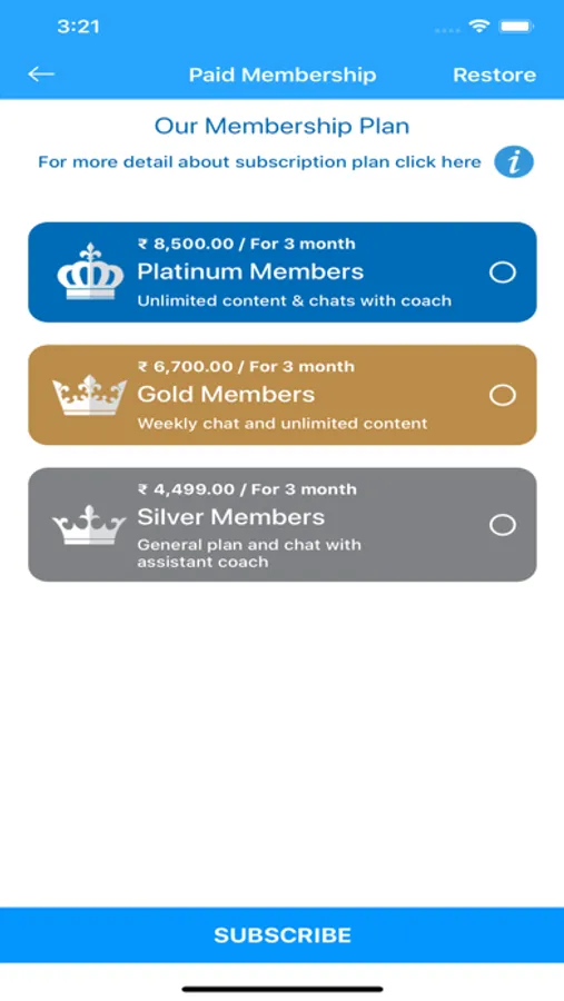 1 - Platinum Member - Access to unlimited content and chats with our Coach for any queries, £95.99 for three month.