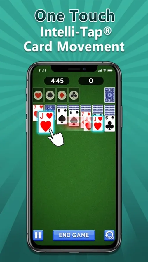 No more slow dragging and dropping to move cards. With Solitaire Deluxe® Cash Prizes, simply tap a card to make it move. Exclusive Intelli-Tap® controls move your card to the right location.