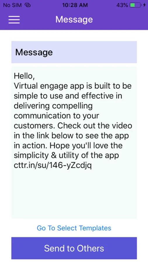 Virtual engage is a HCP engagement app created for performance focussed pharma sales teams to reach out their customers/Doctors virtually via text message and email. Always stay on top of their mind with the auto message composer and video based personalised messaging making it a powerful sales tool for reps.