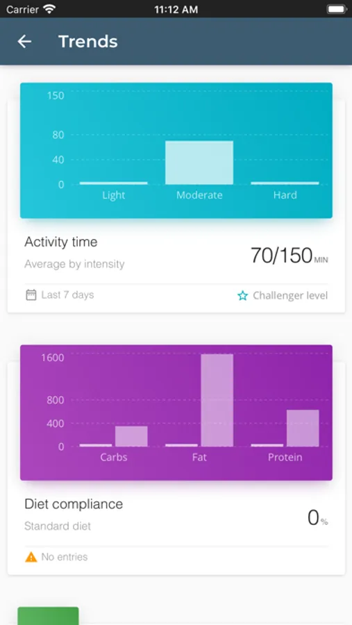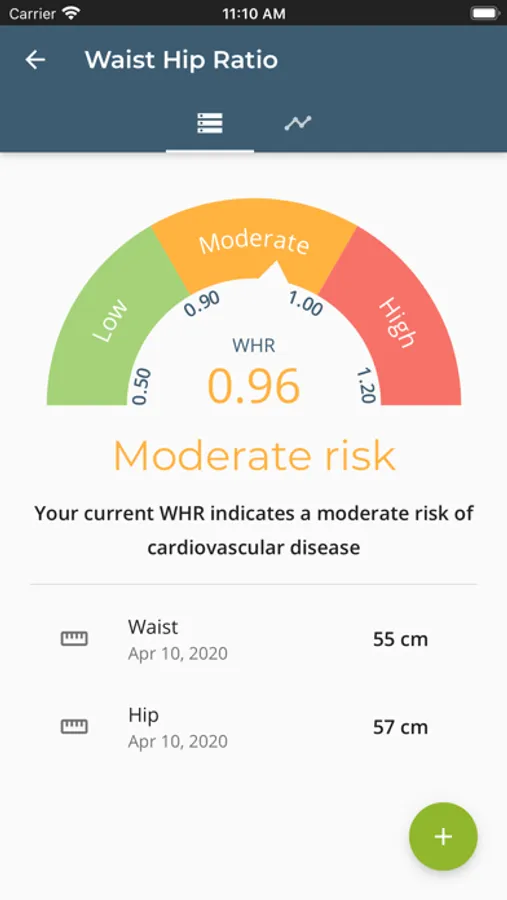 You can enter a variety of vital data (including blood values), which will help you track your progress based on hard facts. Graphs outline the trendline of your entered vital dates.