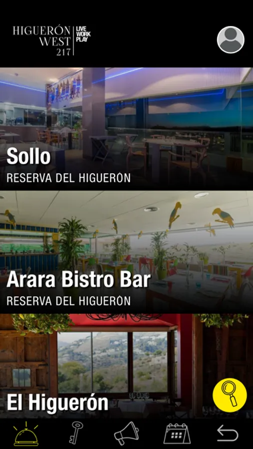 - Concierge: donde se muestran todos los establecimientos y permite realizar reservas directamente desde su app y recibir confirmaciónes y modificaciones sobre la misma en tiempo real.