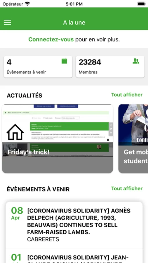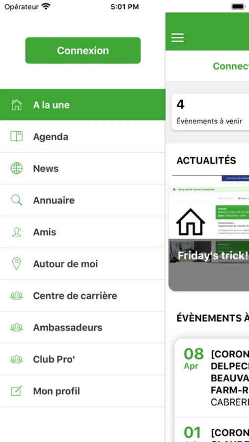 Elle vous permet d'accéder facilement aux principaux service présents sur notre site web : consultation de l'Annuaire des Alumni et géolocalisation des membres, mise à jour de votre profil, accès à l'Agenda des événements,aux actualités...
