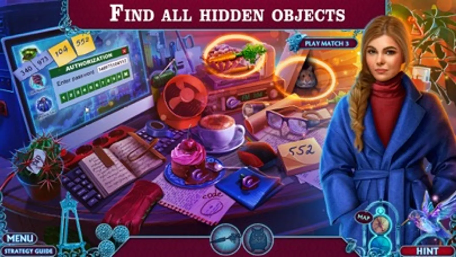 Be a real collector by gathering all the extra-objects in the game. Buy ingredients for your potion to master the potion-making art. Magic shoes will tell about their magic properties, and the household devices will surprise you with their actual nature.