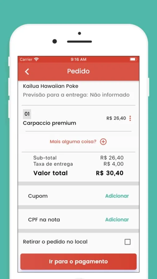- pagamento na maquininha.