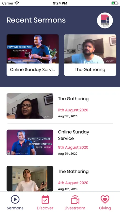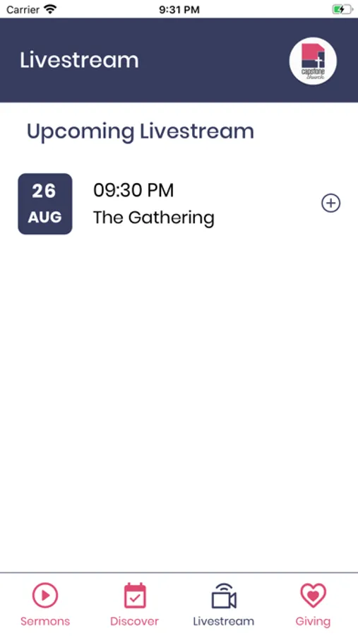 * Capstone Church app lets you keep track of all upcoming live streams and add new events to your calendar.