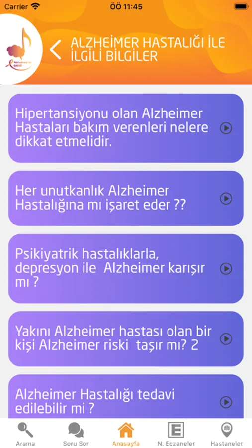 İleri yaşta ortaya çıkabilecek önemli hastalıklardan biri olan Alzheimer , beynin dejenerasyonu ile ortaya çıkar , bilişsel fonksiyonlarda kayba neden olur ve hastalık sürecinde hastanın hayat kalitesini olumsuz yönde etkileyebilir . Hastalık sürecinde hasta yakınları, yani bakım verenler bir çok konuda merak içerisinde olabilir , bu soruların bir kısmını hekimlerine sorabilirken , bir kısmını soramayabilirler. Bu ihtiyaçtan yola çıkarak oluşturulan uygulama ile bakım verenlerin merak ettiği, hasta ihtiyaçlarına günlük yaşama dair temel konular alanlarında önde gelen hekimler tarafından cevaplanıyor. Hastalık bilgisi , hastalık ile yaşam , risk faktörleri gibi pek çok konuda uzman görüşleri, videolar aracılığıyla bakım verenlere iletiliyor.