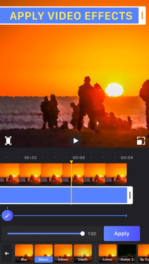 - Apply effects, filters and transitions
