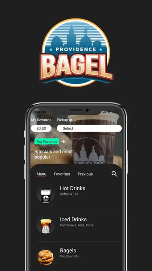 The Providence Bagel app allows customers to easily order ahead and receive great rewards.