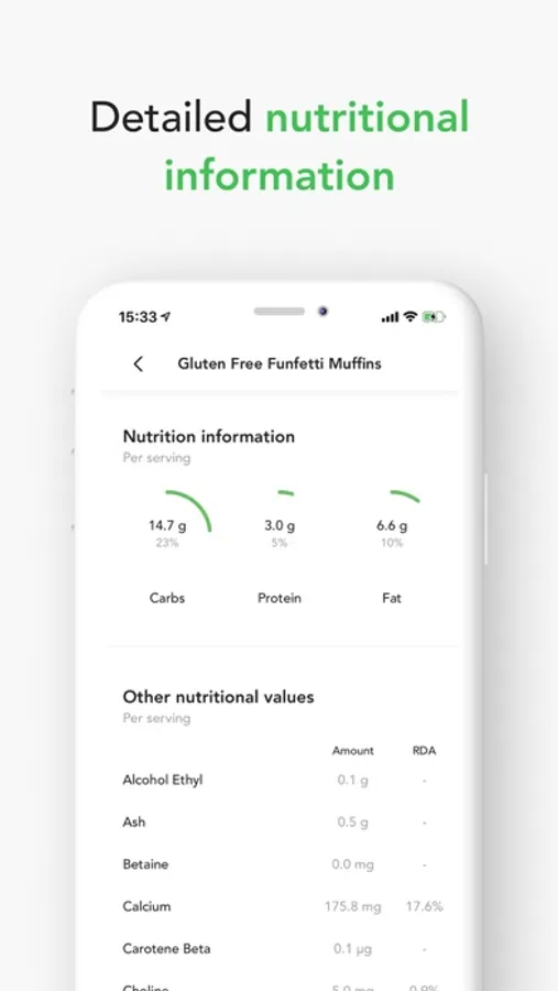 • Detailed nutritional information available for each recipe (calories, protein, vitamins, minerals, etc.)