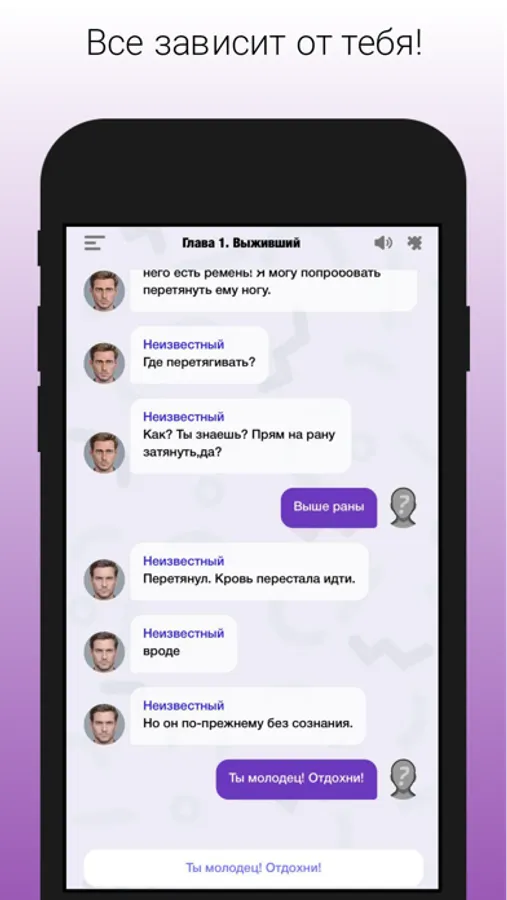 Текстовая интерактивная игра. Приключения в стиле чат-историй и lifeline. Прочтите интерактивную книгу и станьте участником интересной истории.