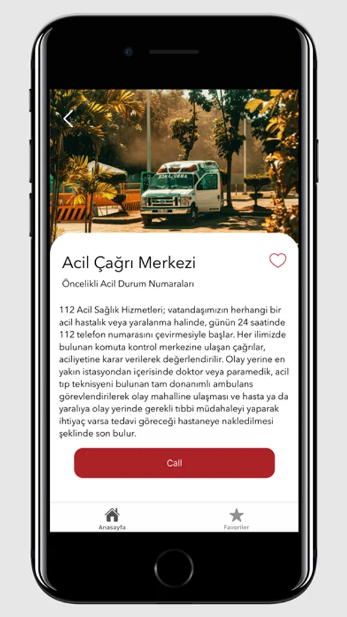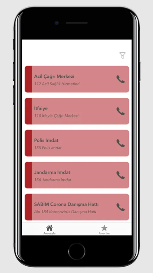 Acil durumlarda en sık kullanılacak olan numaların olduğu uygulamamız da tüm numaralara ait detayları görebilirsiniz. İstediğini numaraları favorilerim kısmına ekleyip hızlı arama imkanı sağlayabilirsiniz.