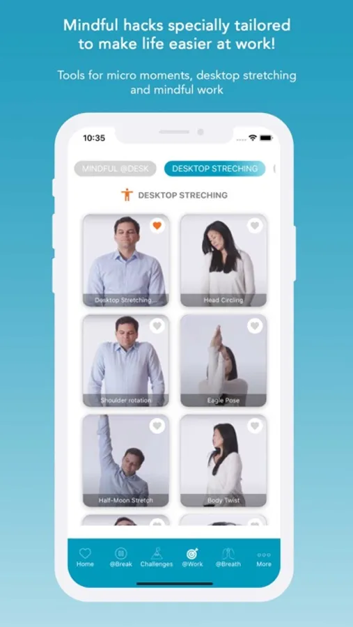 Guided mindfulness that can be used at work, before meetings, between meetings, and at the breaks, to recharge in a quiet and non-invasive fashion to help the user be more mindful at work.