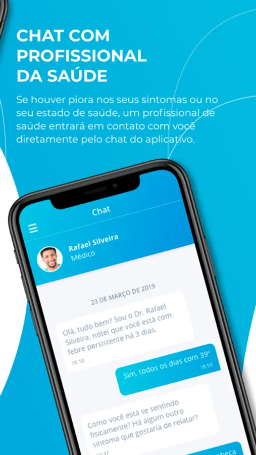O app possibilita mapear sintomas e controlar a quarentena dos pacientes com informações atualizadas e a possibilidade de contato com os agentes de saúde.