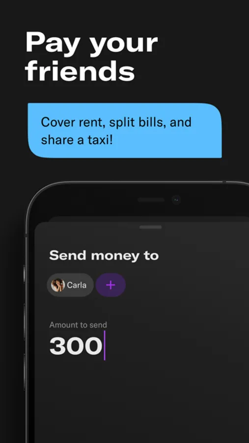 EASILY SPLIT BILLS Need to send money to multiple people at once? Our flexible payment options enable you to add as many participants as possible to a payment request. Perfect for splitting the bill. Planning a trip just got way easier with our bill-splitting feature. You can use it to budget travel plans with friends and to exchange money with friends.