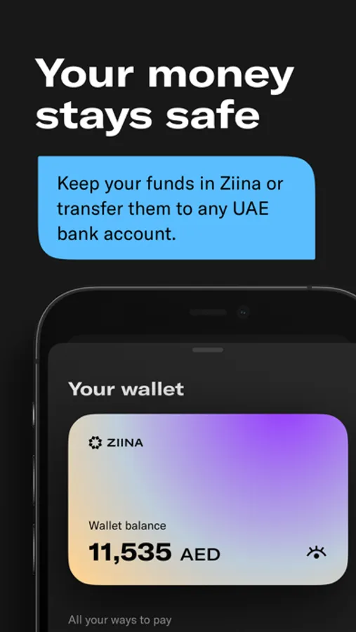 Sign up in 1 minute. All you need is a UAE phone number and an Emirates ID. Receive international payments in AED from anyone, regardless of their local currency. Experience instant money transfers in the UAE. Ziina is a payment app that’s for everyone — use it for personal finance, freelance projects, or your business. Use your phone to make mobile transfers to anyone, anywhere-even if they’re not on the app. Ziina is your go-to for instant, social, and secure money transfers in the UAE.