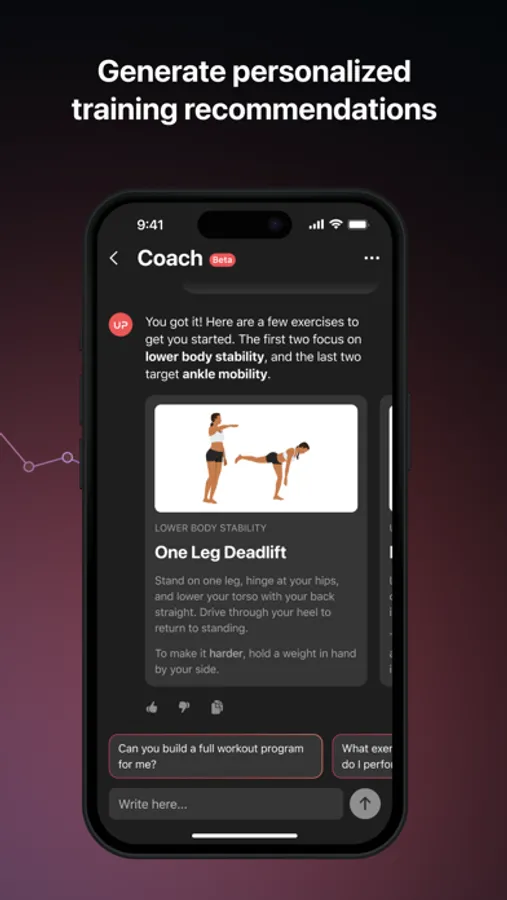 Our AI Coach tracks your progress over time, delivering customized training plans to help you overcome plateaus and reach peak performance. Whether you’re an everyday athlete or training for elite sports like basketball or volleyball, Uplift adapts to your unique needs.