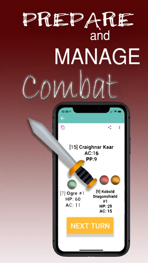 ◉ Encounter Manager (and Initiative Tracker), so you never have to roll that 33d20+330 HP when creating a Tarrasque, or even keep track of turns and monster stats. This app does EVERYTHING for you!
