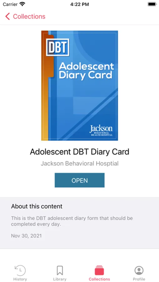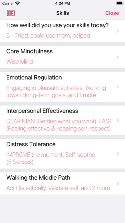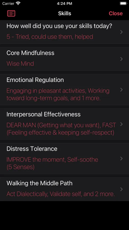 DBT for Adolescents is a new tool that provides all the tools one needs to participate in Dialectical Behavior Therapy. Users can learn important behavioral skills, record their experience applying those skills in a daily journal, and even share their journal with their DBT counselor. Interested behavioral health professionals can contact the app publisher about gaining access to our clinician dashboard in order to use this app with their clients.